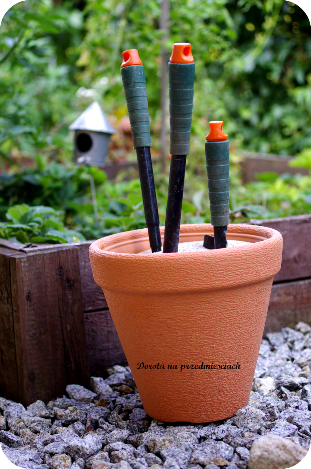 Świetny pomysł z narzędziami w wiaderku z piaskiem 🙂 Ja mam na tarasie postawiony wiklinowy koszyk z pokrywką i w nim trzymam narzędzie i inne ogrodowe i tarasowe przydasie 🙂 Też fajnie zdaje egzamin 🙂