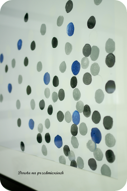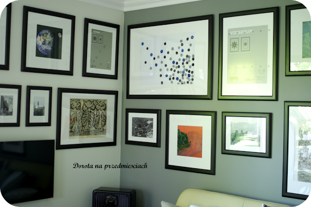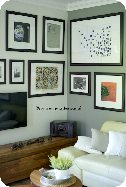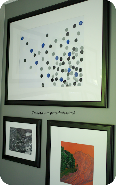 Szczerze mówiąc, gdy zaczęłam czytać posta, podejrzewałam, że chcesz przyznać się do autorstwa któregoś z arcydzieł w ramkach na zdjęciu. Oczekiwałam amatorki – a tu proszę! Naprawdę ciekawie to wyszło i mam wrażenie, że ten "kawałek ściany" wręcz czekał na Twoje "groszki":) Brawo:)