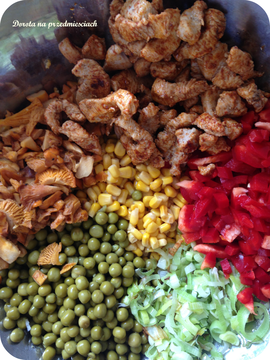 papryka, por, kurki i kurczak.