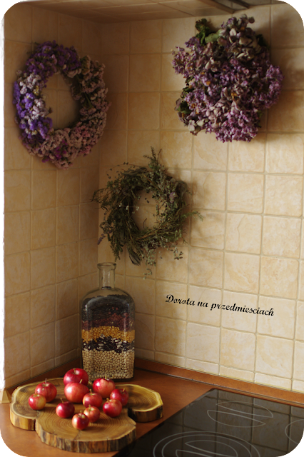Kuchnia w jesiennej odsłonie z darami natury bardzo mi się podoba:) Piękne wianki i pozostałe dekoracje! A Ty Dorotko to z Wrocławia jesteś? Ja jestem z Trzebnicy to pod Wrocławiem:) Pozdrawiam Ala