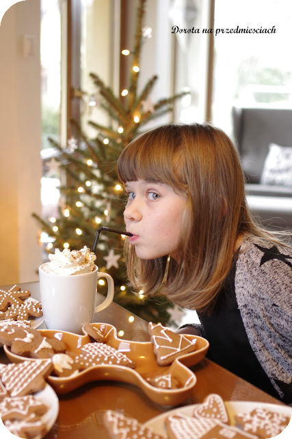 Takie pierniczenie to ja bardzo lubię. Pomocnik uroczy, cała produkcja zasługuje na wielkie brawa, a takiego kakao to sama bym się z chęcią napiła. Zrobię Starszakowi w nagrodę za pomaganie w pierniczeniu – zostawiłam to na weekend. Pierniczki z lukrem jednak prezentują się o wiele lepiej niż takie gołe. Nie przepadam za lukrem, zrobię jednak wyjątek.