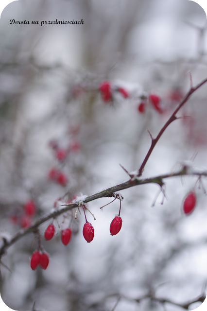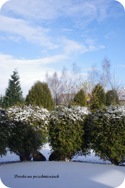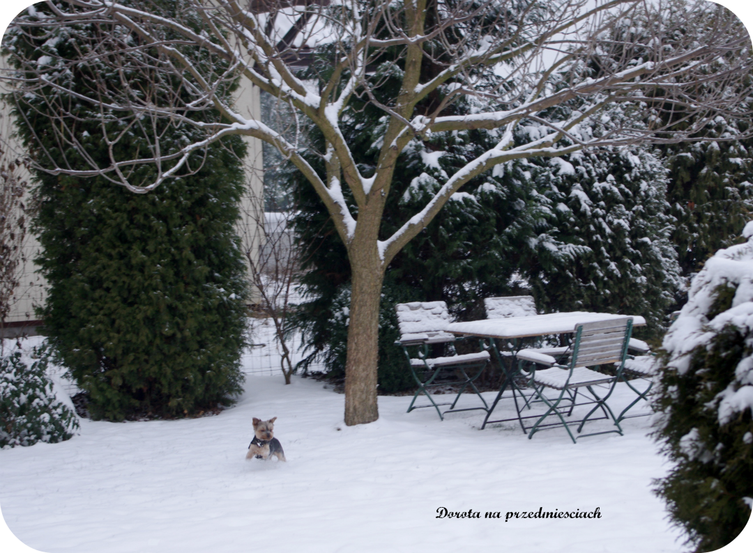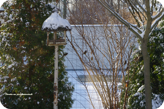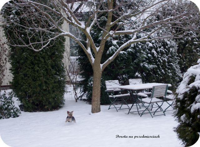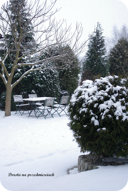 W ogrodach jeszcze biało, ale ulice i chodniki już szare i błotniste, bo mróz puścił. Trochę liczymy na to, że jeszcze sypnie, choćby delikatnie, na ferie :))