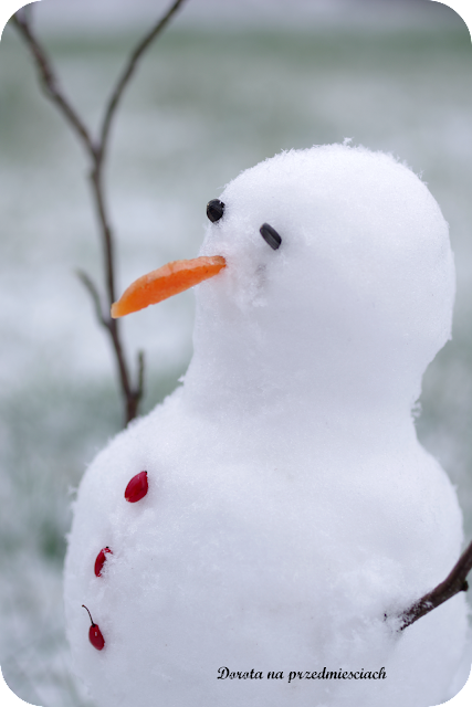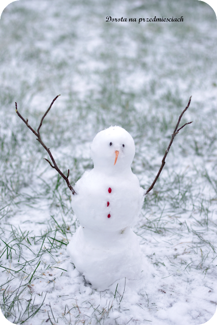 Nie cierpiałam z powodu braku zimy, ale kiedy właśnie obejrzałam się i spojrzałam w oko, zobaczyłam padający śnieg 🙂 I dzięki temu pozytywnemu bałwankowi pomyślałam, że może nie będzie wcale tak źle 😀 Ściskam Dorotko!