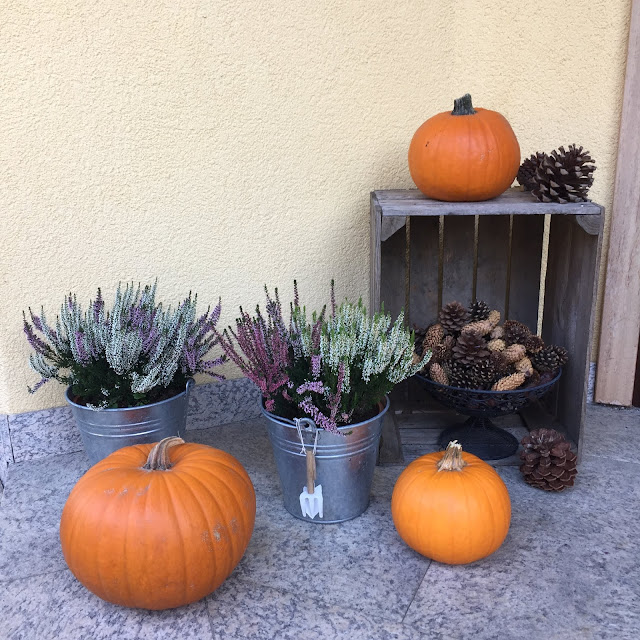 Przed domem tradycyjnie kilka dyni i wrzosy