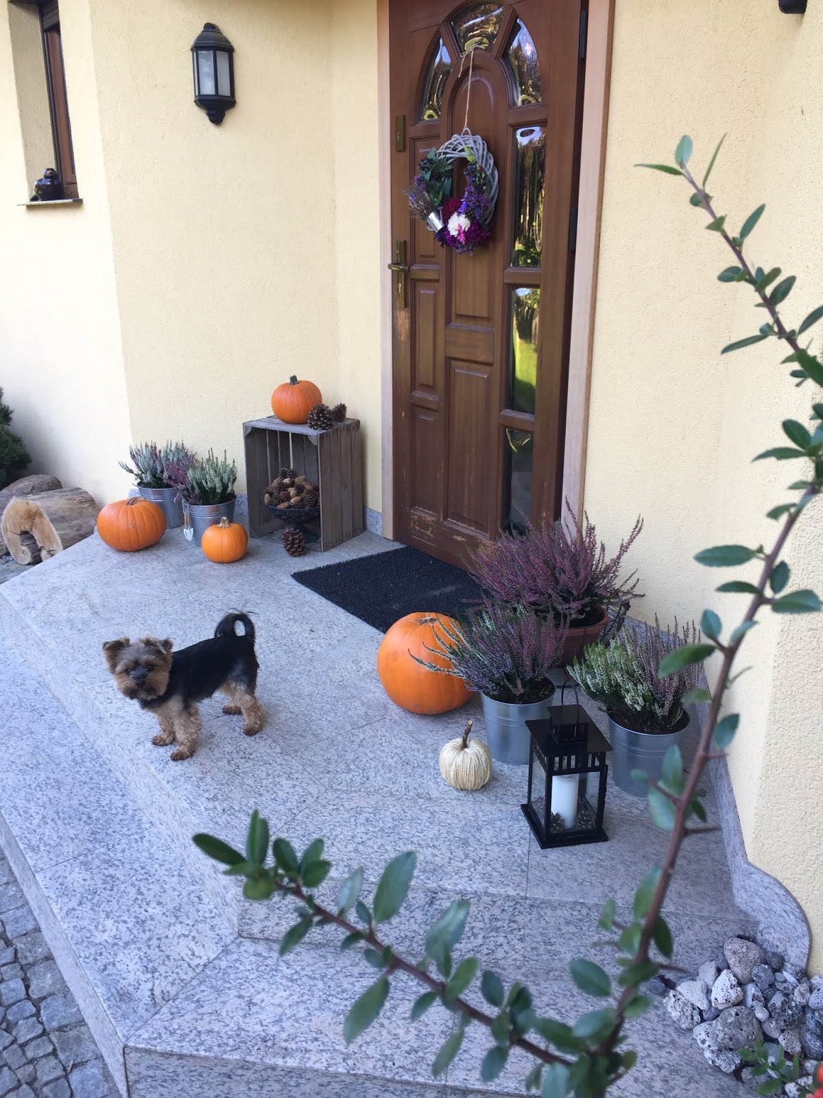 Przed domem tradycyjnie kilka dyni i wrzosy