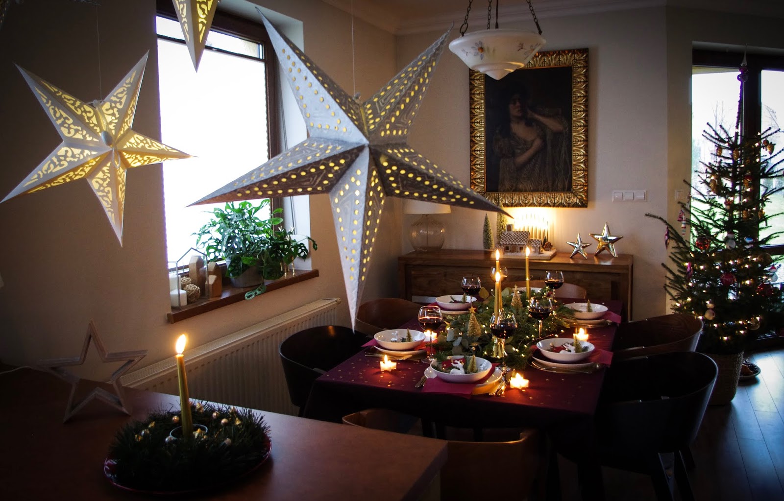 Gwiazdy tez królują we wnętrzu i na stole.